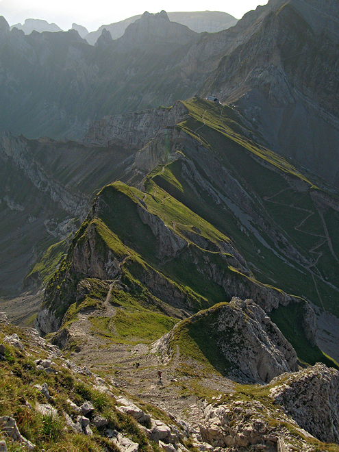 Blick zurück auf Lisengrat und Rotsteinpasshütte