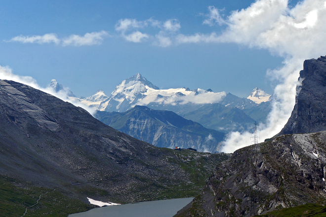 Matterhorn, Dent Blanche und Bouquetins vor dem Gemmipass