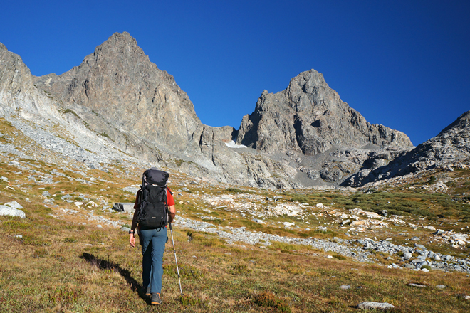 Aufbruch zum Mt. Ritter (links, Banner Peaks rechts)