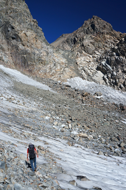 über Schneefeldreste zur "Süd-Ost-Rinne"