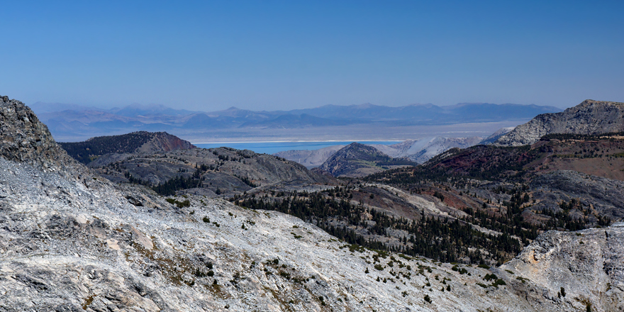 Mono Lake in der Ebene hinter den Bergen...