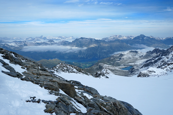 Aussicht Richtung Norden (im Tal Sils i.E. mit Lej da Segl)