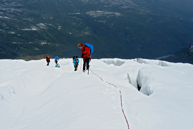 im Spaltengewirr des Sella-Gletschers