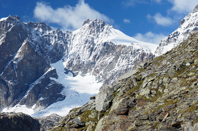 Blick vom Rifugio Marinelli-Bombadieri auf's Rifugio Marco e Rosa