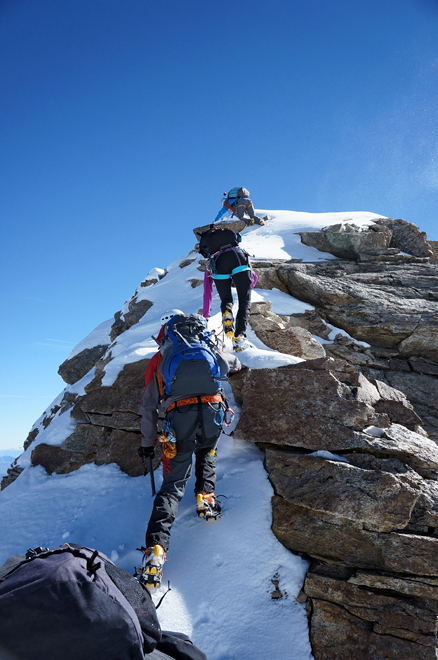Kraxeleien auf dem felsigen Grat zum Piz Spinas (Westgipfel des Piz Palü)