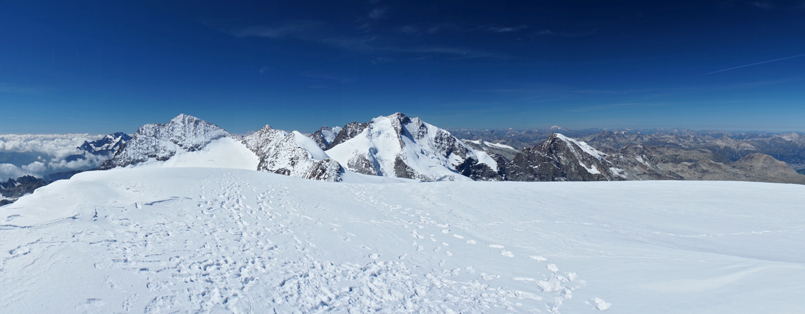 auf dem Piz Palü (3900m) mit Blick (nach Westen) auf Piz Zupo, Piz Roseg, Piz Bernina, Piz Morteratsch etc