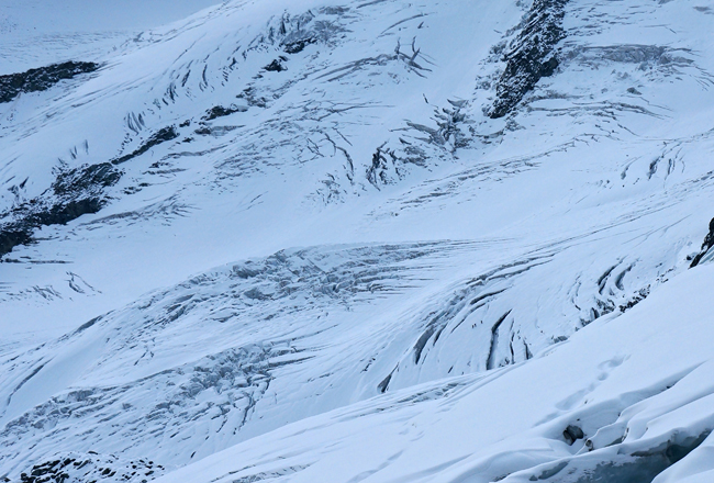 Suchbild: Dreier-Seilschaft auf dem Roseg-Gletscher