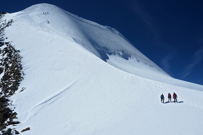 nach dem steilen Abstieg vom Ostgipfel des Piz Palü