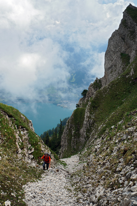 steiler Aufstieg mit Tiefblicken