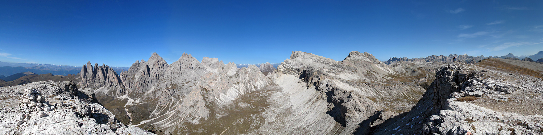 Blick nach Norden auf Geissler Gruppe, Piz Duleda, u.a.