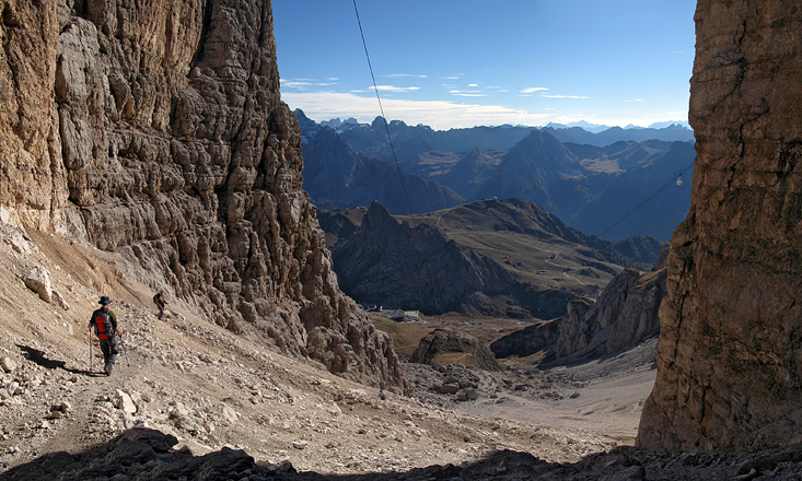 Abstieg von der Forcella del Pordoi zum Passo Pordoi
