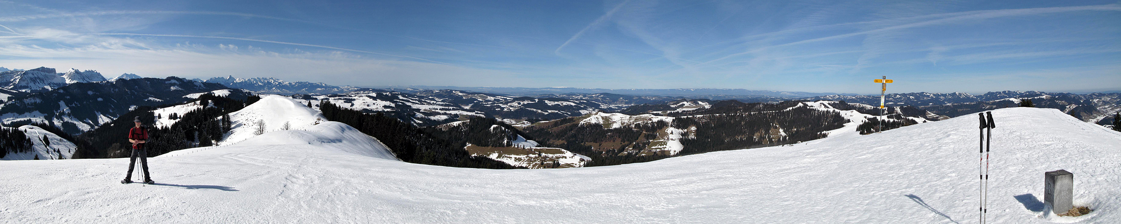 Blick vom Wachthubel Richtung Westen (Alpen links, Jura rechts)