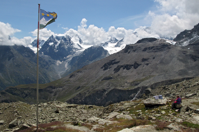 an der Cab. des Aiguilles Rouges mit Blick auf Mont Collon und Wolken