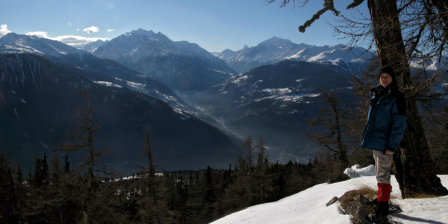 Ausblick auf Mischabelgruppe, Matterhorn und Weisshorn (u.a.)