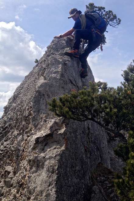 elegantes Abklettern an der "Hang- und Springstelle"