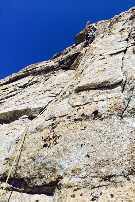 Andrea beim Klettern am Chlyne Diamantstock
