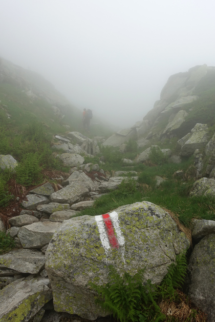 Aufstieg zur Bächlitalhütte in Wolken