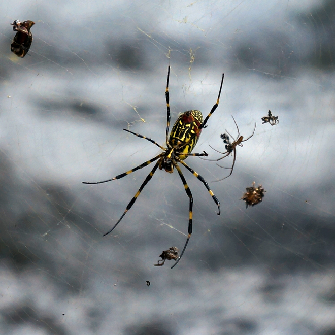 eine Joro Spinne (Nephila clavata) aus der Familie der Seidenspinnen (giftig aber nicht tödlich)