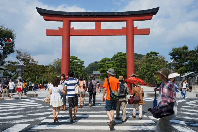 Torii am Eingang des Tsurugaoka Hachiman-gu Schreins