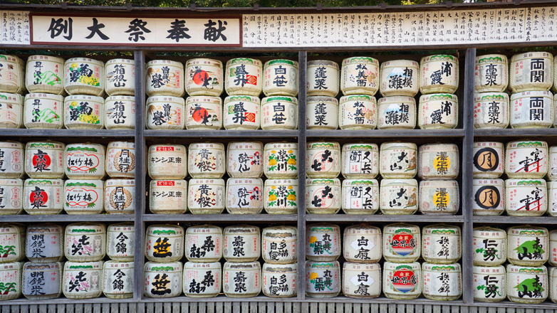 Sake-Fässer als Opfergabe