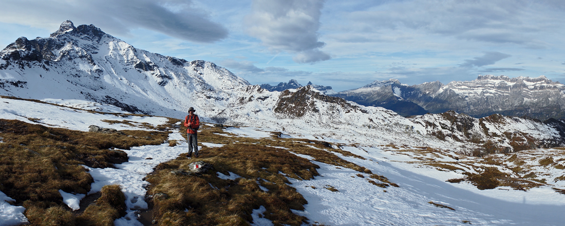 auf der Terasse des Hinter Matt, mit Blick auf den Chärfp und mehr