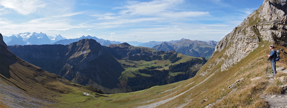 Blick vom Chringengrätli auf Berner Alpen, Chingstuel, Gibel, Alp Chummelbach und mehr