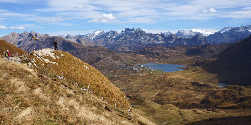 Ausblick auf Melchsee-Frutt, im Hintergrun Titlis, Sustenhorn, Gewächtenhorn, etc.