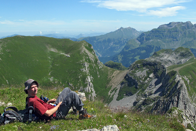 Pause mit Blick auf das nächste Ziel: der Widderfeldstock