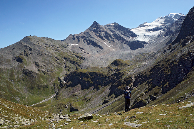 Rauthorn/Böshorn und Fletschhorn mit Gamsagletscher oberhalb des Obers Fulmoos