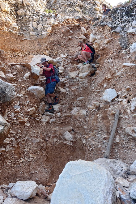 Abstieg ueber weggeschwemmten Leiterweg
