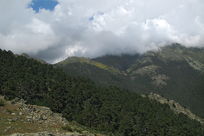 Blick zurück zur Cuerda de las Cabrillas unter Wolken