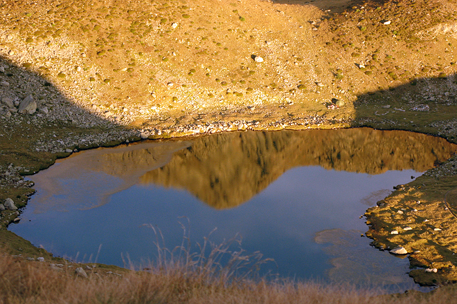 Zeltplatz an einem der Lacs de Prals im Abendlicht