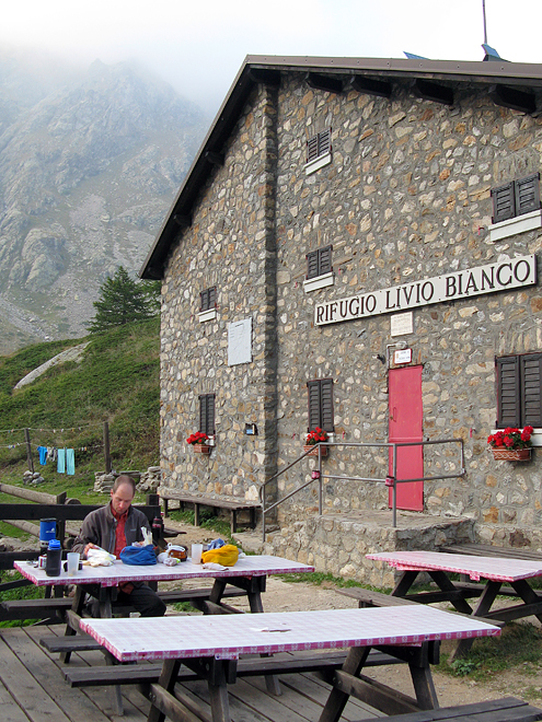 vor dem Rifugio Livio Bianco am Lago settano della Sella