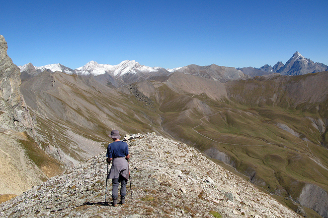 Blick Richtung Colle Bellino, hinten rechts Monte Viso