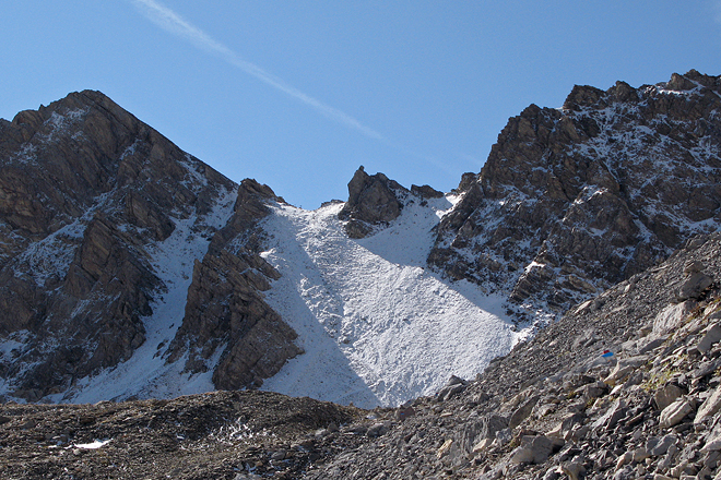 Schneebedeckter Aufstieg zum Colle Chiaslaras (2973m)