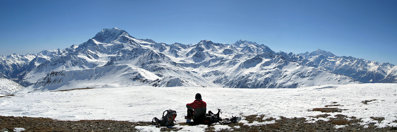 Mittagspause mit Ausblick auf Walliser Viertausender
