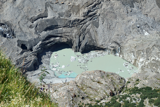 Schutt, Eis und See des Unteren Grindelwaldgletschers