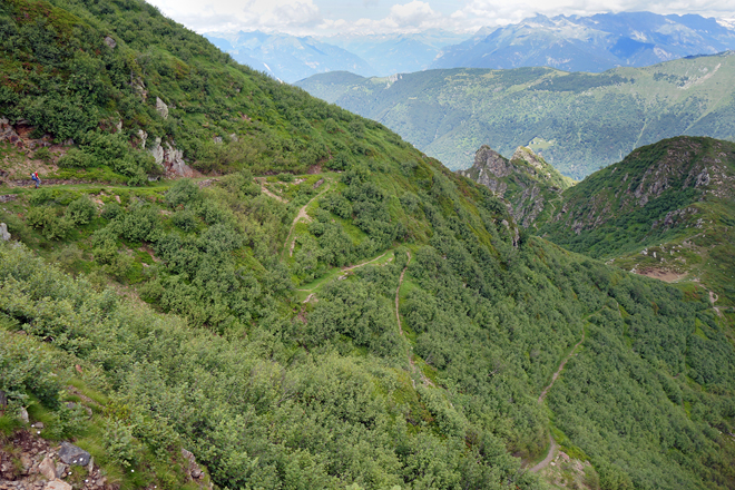 in zigzags bergab