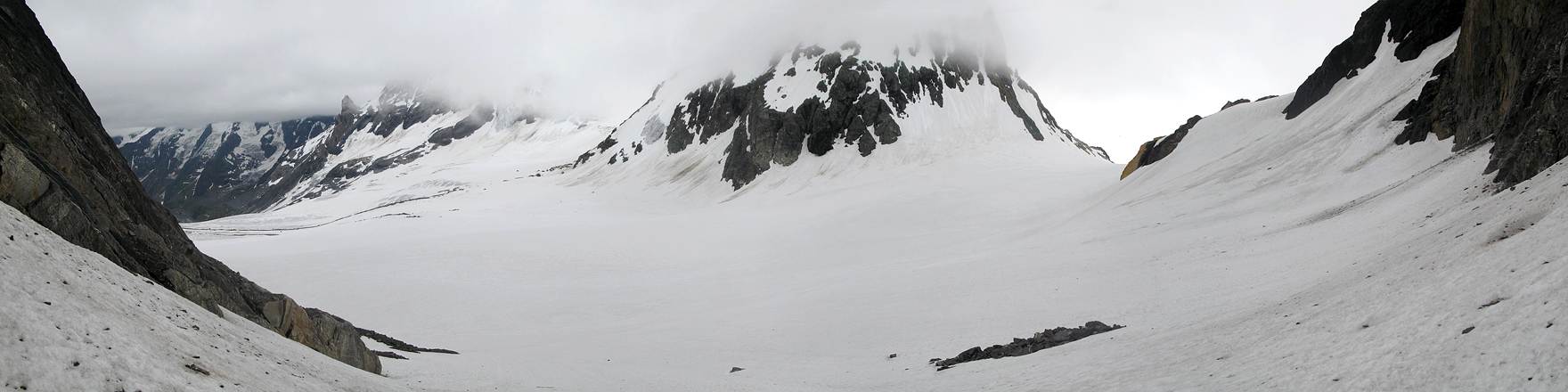Tschingelfirn, Mutthorn, und Tschingelpass unter/in Wolken