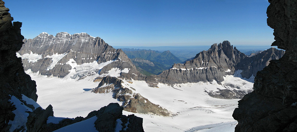Blick auf Blüemlisalpgruppe, Mutthorn, Gamchilücke, Niesen, Gespaltenhorn