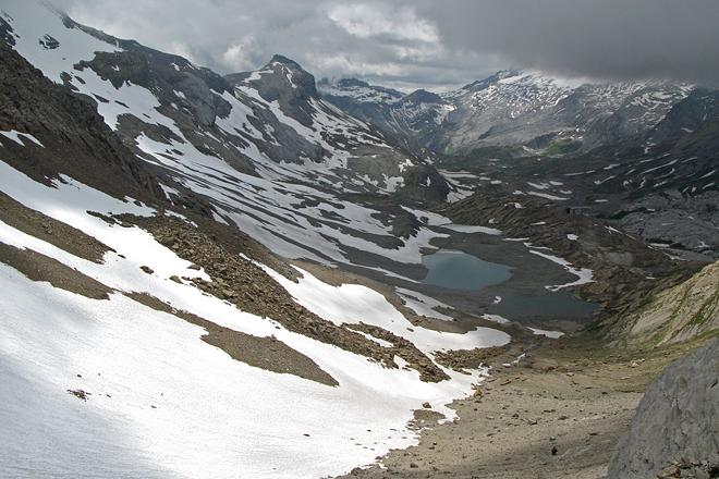 view from Tierbergsattel towards the Wildhorn (in clouds) and the Rawilseeleni