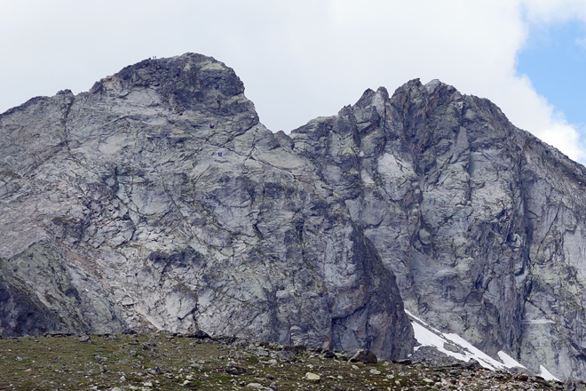Rückblick auf das Chlys Augstchrummenhorn mit drei Seilschaften