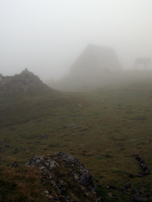 Refuge de Barroude in Wolken